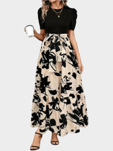 Květinové šaty s vysokým pasem a pruhovanými vzory