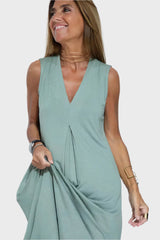 Předveďte svou přirozenou eleganci s tímto šatům bez rukávů v zemitě zeleném odstínu. Perfektní pro každodenní nošení i pro neformální setkání s přáteli.
