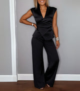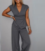 • Dvoudílný set: překřížený top + kalhoty s širokými nohavicemi