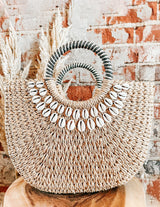 Isabella™ - slámová taška s mušlovou dekorací a ručně vyráběnými detaily